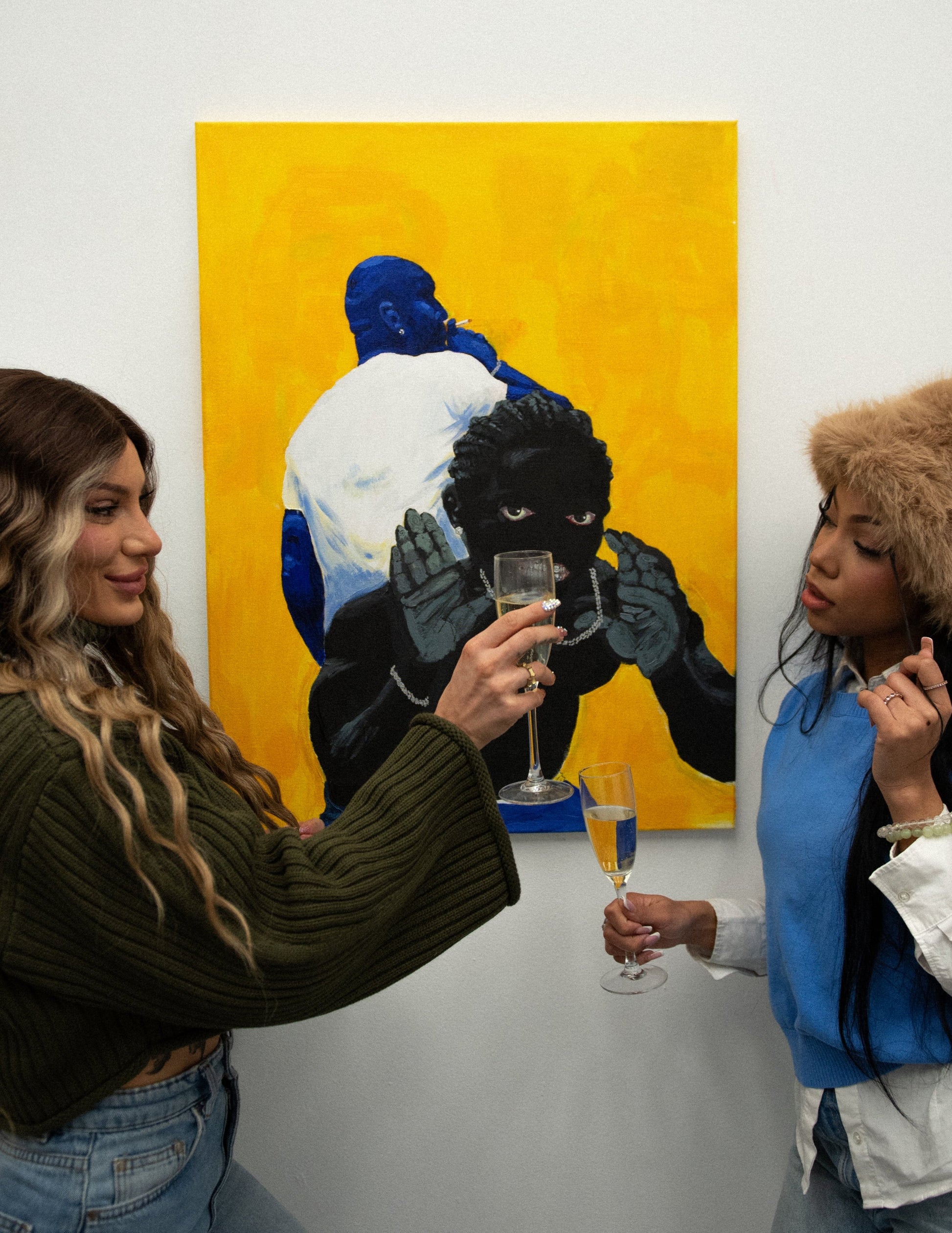 Wir sehen das Kunstwerk “Rammbock” des Künstlers OG Keemo in Acryl auf Leinwand. Ein wahres Multitalent.